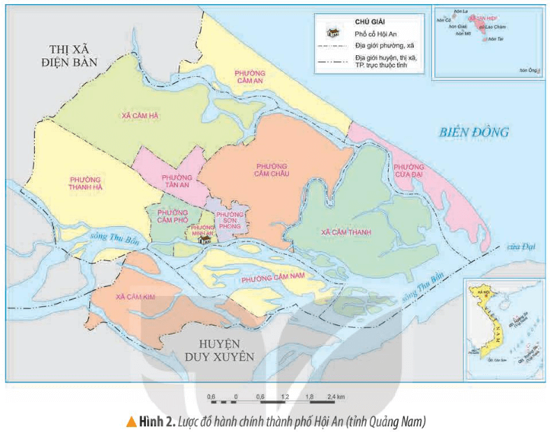 1. Quan sát lược đồ hình 2, hãy xác định vị trí địa lí của Phố cổ Hội An.