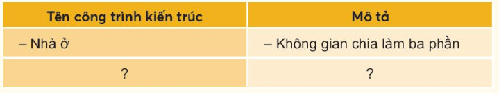 Lập và hoàn thành bảng mô tả về một số công trình kiến trúc ở Hội An (theo gợi ý dưới đây).