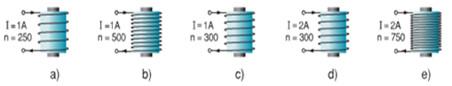 → Nam châm e có I  = 2A, n = 750 mạnh hơn các nam châm còn lại