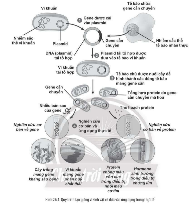 Hình 26.1 mô tả quy trình tạo giống vi sinh vật để đưa vào ứng dụng trong thực tế. Quan sát hình và trả lời các câu hỏi sau.