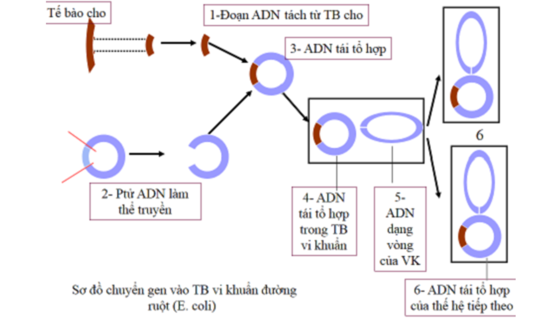 (1) Tách plasmid từ tế bào vi khuẩn và gene cần chuyển từ tế bào cho.