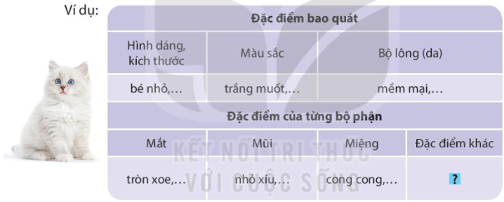 Lưu ý: Quan sát kĩ đặc điểm nổi bật của con vật khiến em thấy thú vị (ví dụ: sừng trâu cong vút, đuôi mèo dài, mỏ vẹt khoằm,…).