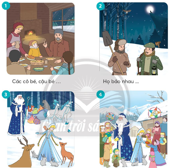 2. Mùa đông, mọi ngả đường đều ngập trong tuyết trắng lấp lánh. Ban đêm, thường chỉ nghe tiếng sói tru, tiếng hổ gầm gừ, tiếng cú kêu. Nhưng vẫn có những người rời căn nhà gỗ sồi ấm cúng, đi vào rừng. Họ bảo nhau: “Đừng sợ, ông già mùa đông sẽ bảo vệ chúng ta…”.