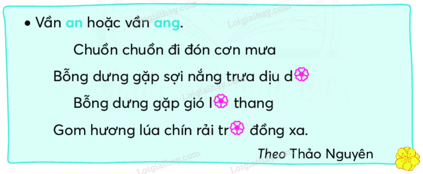 Em đọc kĩ để điền vần thích hợp vào các ô hoa.