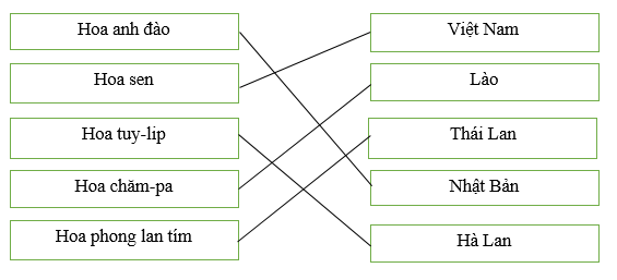 Mỗi loài hoa dưới đây là biểu trưng của đất nước nào? Hãy nối tên mỗi loài hoa với tên đất nước tương ứng.