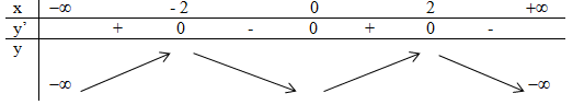\(\Rightarrow  – 4{x^3} + 16x = 0\,\, \Leftrightarrow \left[ \begin{array}{l}x =  – 2\\x = 0\\x = 2\end{array} \right.\)