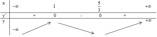 \(\Rightarrow \,\,3{x^2} – 8x + 5 = 0\, \Leftrightarrow \,\,\left[ \begin{array}{l}x = 1\\x = \dfrac{5}{3}\end{array} \right.\) . Ta có bảng biến thiên: