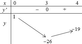 Câu 23: Gọi \(M\) và \(m\) lần lượt là giá trị lớn nhất và giá trị nhỏ nhất của hàm số \(y = {x^3} – 3{x^2} – 9x + 1\) trên đoạn \(\left[ {0;4} \right]\). Tính tổng \(m + 2M\).