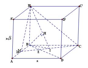 \( = \dfrac{1}{3}d\left( {A;\left( {BCC’B’} \right)} \right)\)\(.\dfrac{1}{2}d\left( {M;CC’} \right).CC’\)