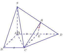 Kẻ \(EH \bot SD{\mkern 1mu} {\mkern 1mu} \left( {H \in SD} \right)\) ta có \(\left\{ \begin{array}{l}SD \bot EH\\SD \bot CE\end{array} \right. \Rightarrow SD \bot \left( {HCE} \right)\)\( \Rightarrow SD \bot CH\)