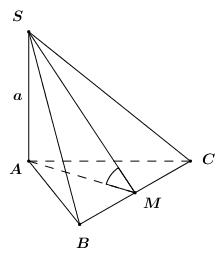 Câu 21: Cho hình chóp \(S.ABC\) có đáy \(ABC\) là tam giác vuông cân tại \(A\),\(BC = 2a,\) \(SA = a\) và \(SA\) vuông góc với đáy. Tính góc giữa hai mặt phẳng \(\left( {SBC} \right)\) và \(\left( {ABC} \right)\)?