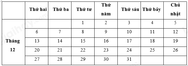 Câu 3. Xem tờ lịch tháng 12 dưới đây rồi trả lời câu hỏi:
