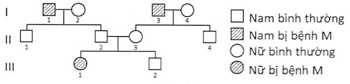 Câu 24: Khảo sát sự di truyền bệnh M ở người qua ba thế hệ như sau: