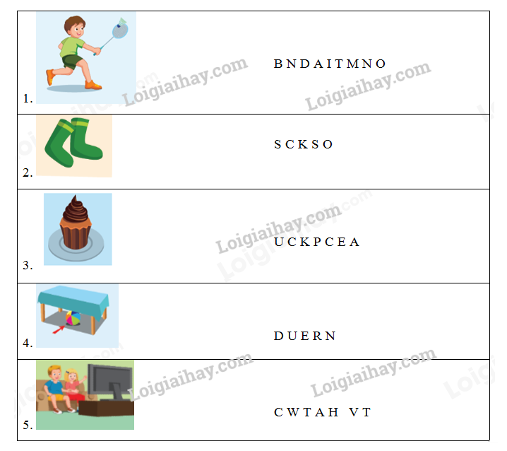 (Nhìn và sắp xếp các chữ cái để tạo thành những từ đúng.)
