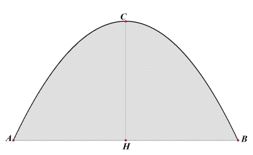 Gắn hệ trục tọa độ, viết phương trình parabol và suy ra diện tích theo công thức: