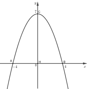 \(C\left( {0;7} \right)\) là đỉnh nên \( – \frac{b}{{2a}} = 0 \Rightarrow b = 0\)\( \Rightarrow y = a{x^2} + c\).