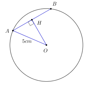 Cho đường tròn tâm \(O,\) bán kính \(R = 5\;cm\) có dây cung \(AB = 6\;cm.\) Tính khoảng cách \(d\) từ \(O\) tới đường thẳng \(AB.\)