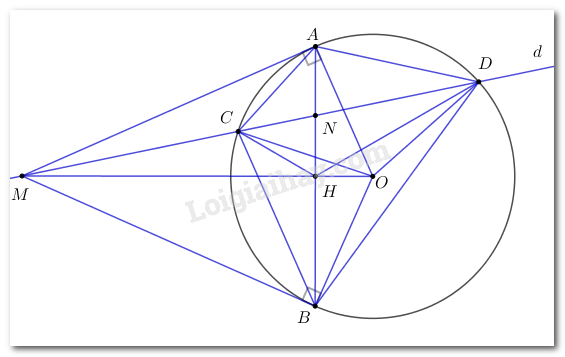 Cho đường tròn (O; R) và điểm M cố định nằm ngoài (O; R). Từ M kẻ các tiếp tuyến MA, MB tới (O; R) (A, B là các tiếp điểm). Đường thẳng (d) bất kỳ qua M và cắt (O; R) tại hai điểm phân biệt C, D (C nằm giữa M và D). Gọi N là giao điểm của AB và CD.