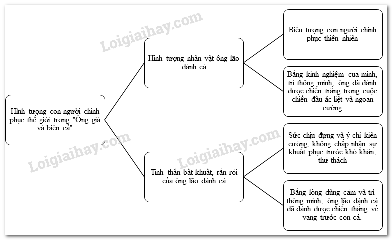 – Yếu tố thuyết minh: “Hình tượng ông lão đánh cá trong tác phẩm tượng trưng cho người chinh phục thiên nhiên… khẳng định sức mạnh cả tinh thần và thể chất của con người.”