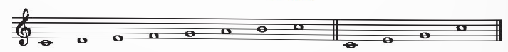 – Gam C-dur: thứ tự lần lượt các nốt là C-D-E-F-G-A-B-C
