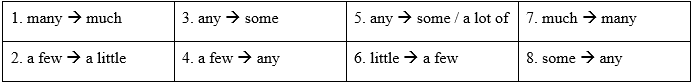 8. Fill in each gap with how much, how many, some, any, a lot of, few, a few, little or a little.