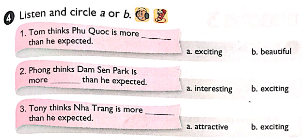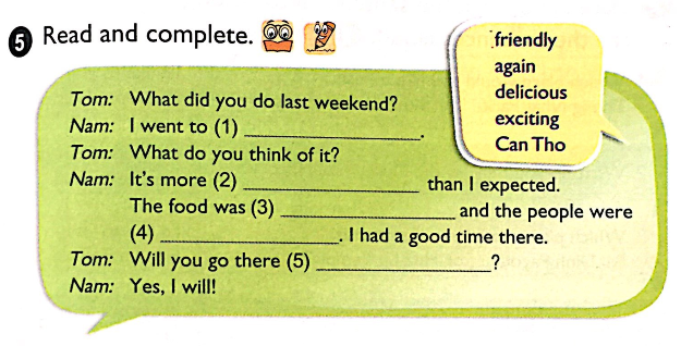 Nam: It’s more (2) exciting than I expected. The food was (3) delicious and the people were (4) friendly. I had a good time there.