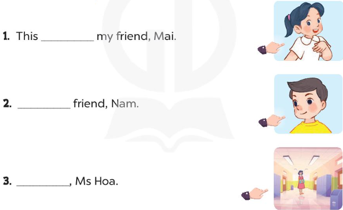 3 – b: That’s my teacher, Ms Hoa. (Đây là cô giáo của tôi, cô Hoa.)