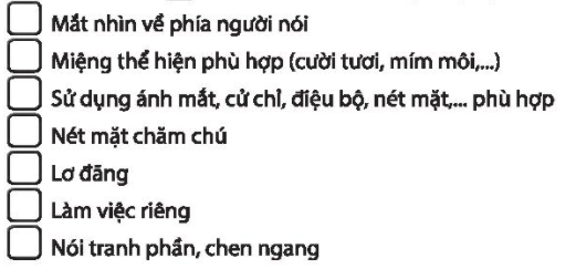 Đánh dấu X vào ô trước biểu hiện kĩ năng lắng nghe của em.