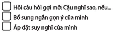 Đánh dấu X vào ô trước kĩ năng phản hồi mà em đã thực hiện.
