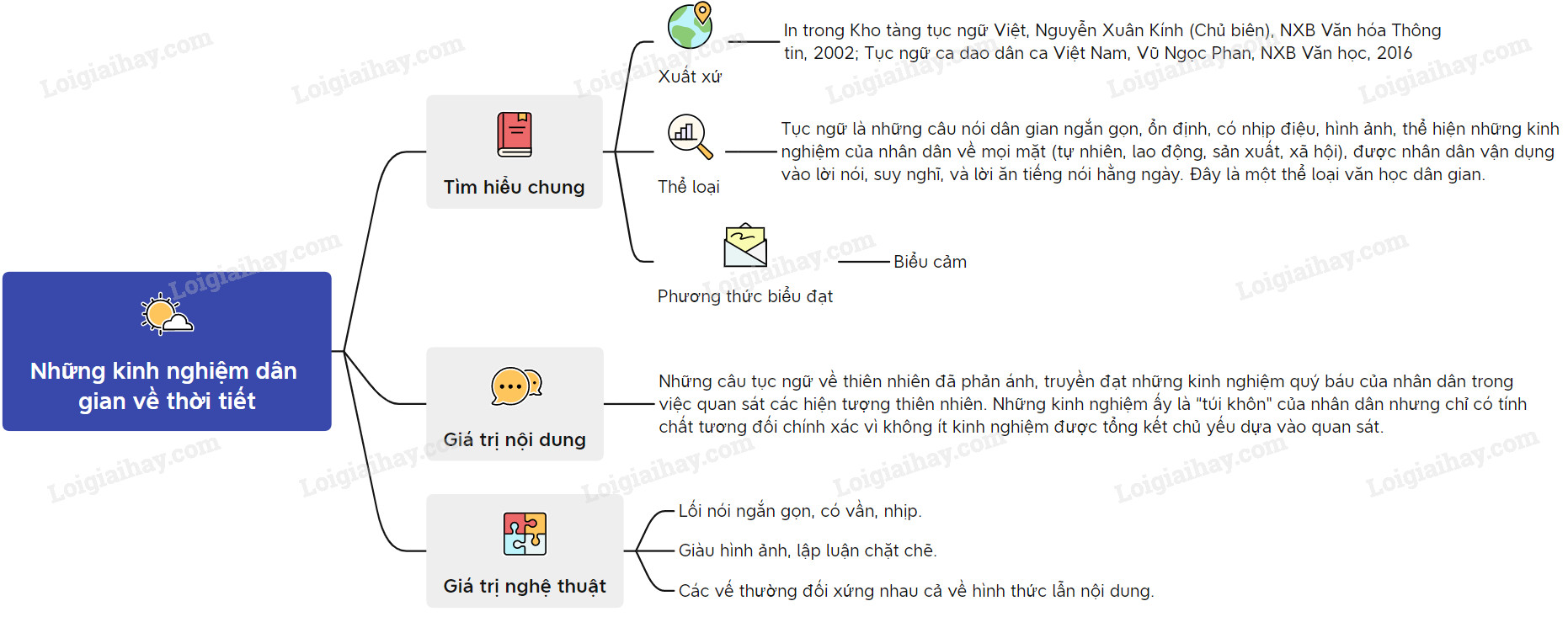 Sơ đồ tư duy văn bản Những kinh nghiệm dân gian về thời tiết:
