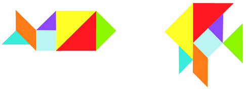 Các em quan sát kĩ hình vẽ và dùng các miếng ghép hình tam giác, hình bình hành, hình vuông để xếp thành hình con cá.