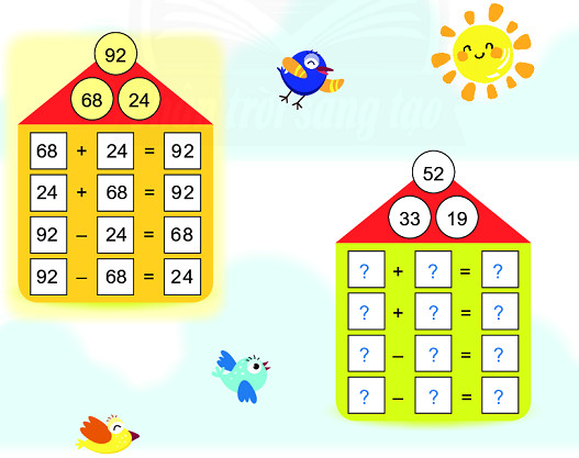 Quan sát ta thấy tổng của 33 và 19 là 52, từ đó ta viết được phép cộng, từ phép cộng ta viết được các phép trừ tương ứng.