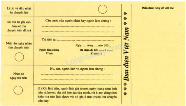 Theo em, khi nhận được tiền kèm theo thư chuyển tiền này, người nhận cần viết những gì vào bức thư để trả lại bưu điện?