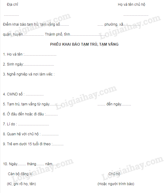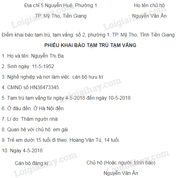 Điền xong, em đưa cho mẹ. Mẹ hỏi : “Con có biết tại sao phải khai báo tạm trú, tạm vắng không ?” Em trả lời mẹ thế nào ?