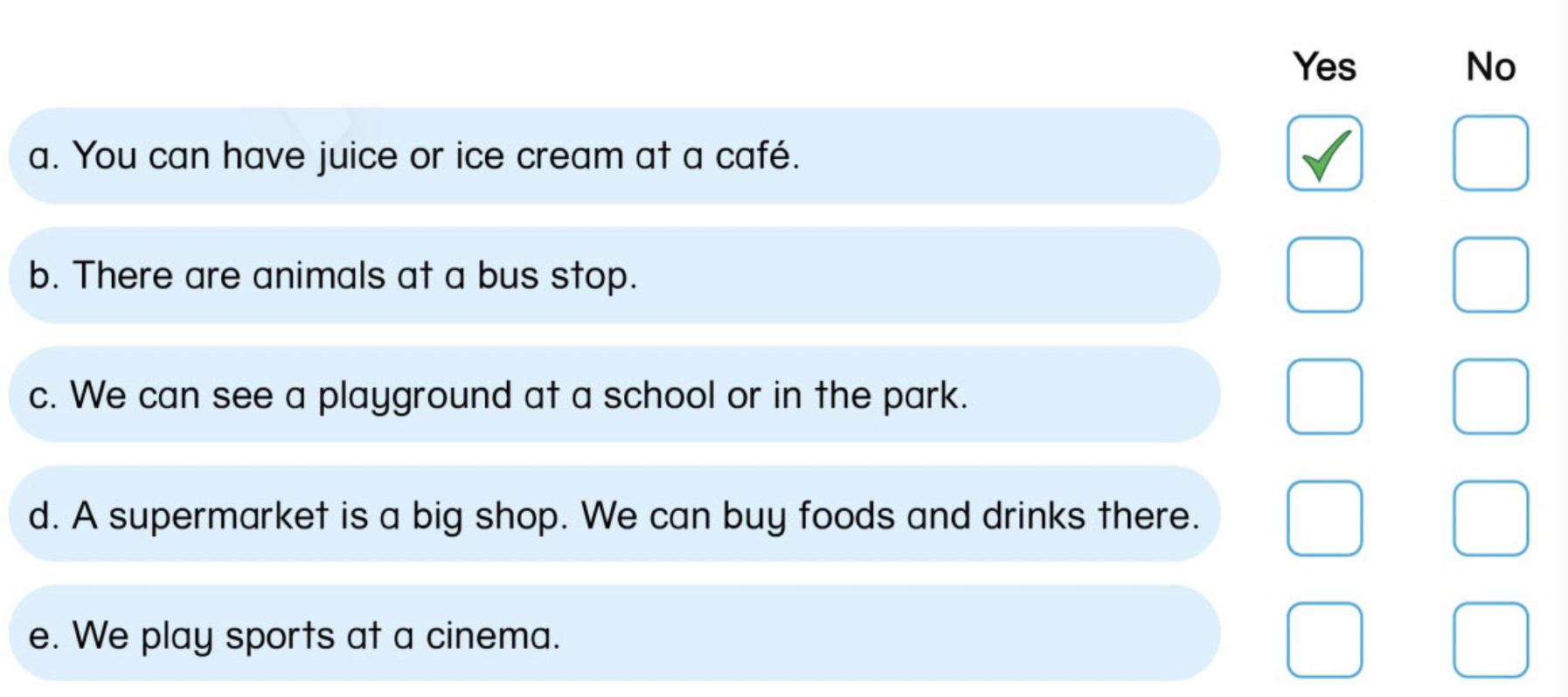 (Đọc đoạn hội thoại. Đánh dấu tích hoặc dấu nhân.)