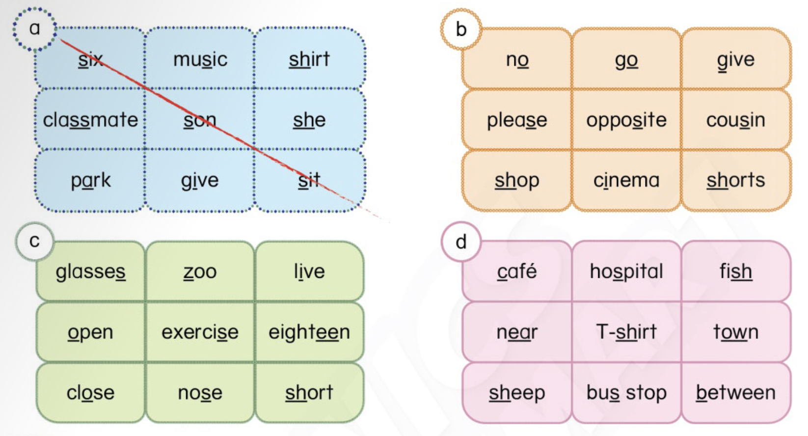(Tìm những từ có phát âm giống nhau trong 1 hàng.)
