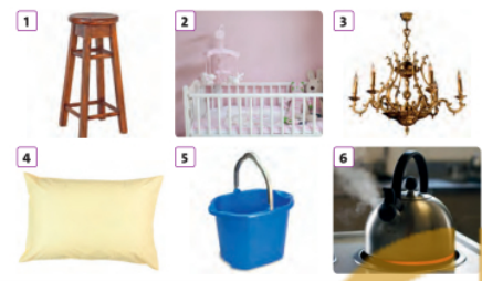 Đáp án: cot, duvet, mattress, pillow, wardrobe, rug.