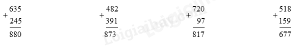 – Thực hiện cộng các chữ số thẳng cột theo thứ tự từ hàng đơn vị đến hàng chục, hàng trăm