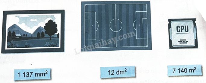 Quan sát tranh rồi chọn số đo diện tích phù hợp với mỗi bề mặt