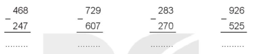 – Thực hiện trừ các chữ số thẳng cột theo thứ tự từ hàng đơn vị đến hàng chục, hàng trăm.