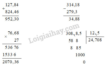 Thực hiện các phép tính sau, rồi kiểm tra lại kết quả bằng máy tính bỏ túi :