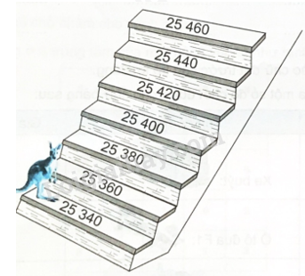 a) Chuột túi sẽ nhảy đến những bậc thang ghi số 25 400 và 25 460