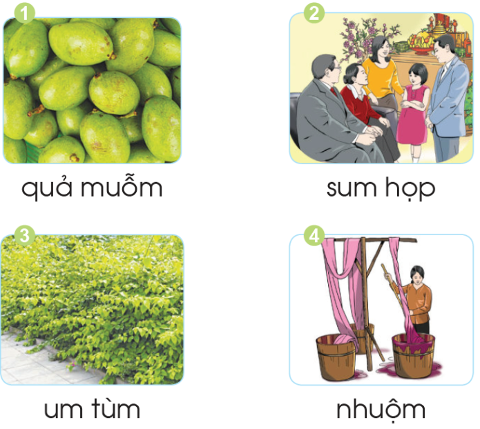 – Tiếng có vần uôm là: muỗm, nhuộm