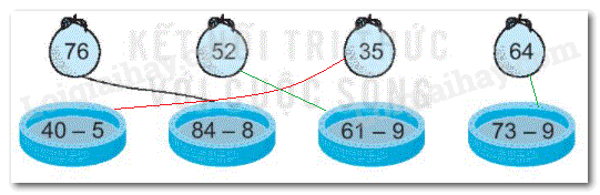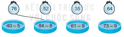 Đặt tính rồi tính (hoặc tính nhẩm) kết quả các phép trừ rồi nối với số thích hợp ghi trên mỗi quả.