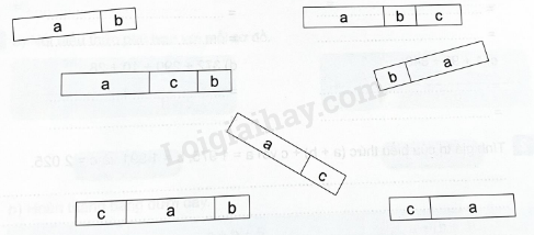 Rô-bốt dùng những đoạn có độ dài a, b, c để ghép được những thanh như hình dưới đây. Tô màu những thanh có độ dài bằng nhau bằng những màu giống nhau.