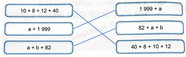 Áp dụng tính chất giao hoán để nối các biểu thức có giá trị bằng nhau.