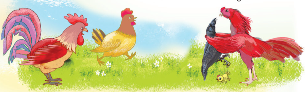 Qụa ghé xóm gà. Gà mơ ngờ ngợ: “Qụa la cà làm gì?”