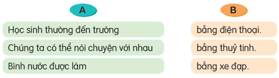 Ghép ý ở cột A với ý phù hợp ở cột B để tạo câu.