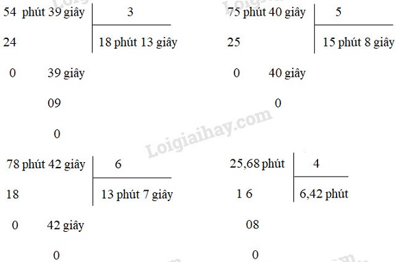 Giải bài tập 1, 2, 3 trang 56, 57 VBT toán 5 bài 127 : Chia số đo thời gian cho một số với lời giải chi tiết và cách giải nhanh, ngắn nhất