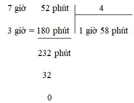 – Chia từng số đo ở số bị chia cho số chia (theo thứ tự từ trái sang phải), nếu chia còn dư thì ta đổi sang đơn vị đo bé hơn rồi tiếp tục chia như thông thường.